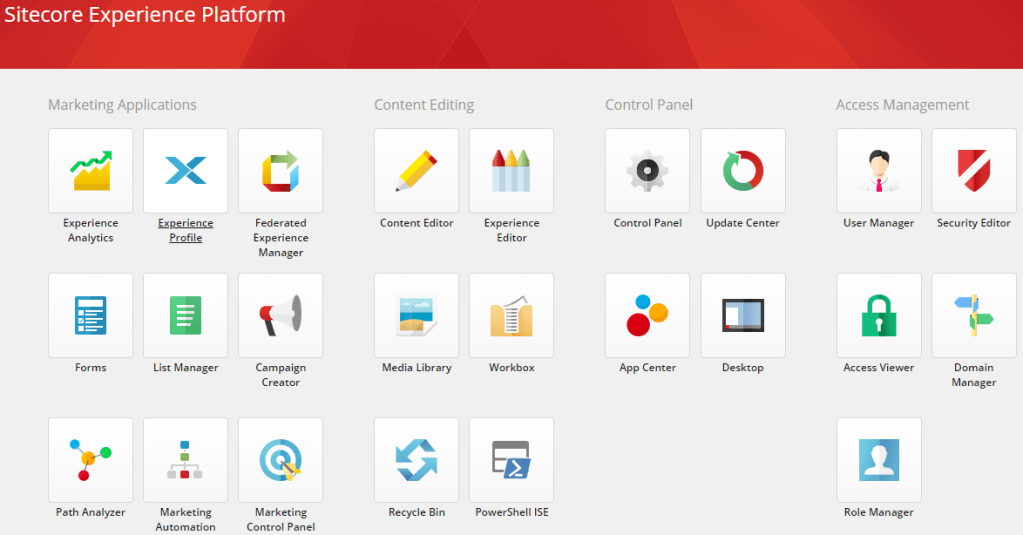 Step 4: It is best practice to click all the icons once on Sitecore Launchpad to verify that they are not broken and showing error.